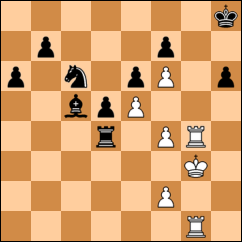 1.Rh2 Af8 2.Tg8+ Rh7 3.Txf8 Txf4 4.Tg7# 1-0. El negro podría haber pospuesto el mate una jugada más jugando: 3...h5 4.Tg7+ Rh6 5.Th8# )