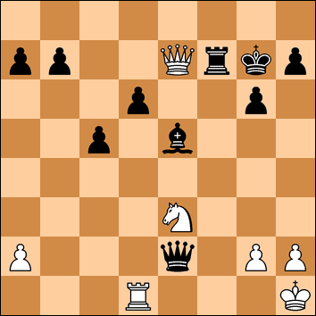 Solución: (arrastra el puntero para verla) (1. Cf5+! 1/2-1/2, ya que habrá jaque perpetuo tanto si 1... gxf5 2. Dg5+ como si 1... Rg8 2. Ch6+ y, por supuesto, mate si 1...Rh8?? 2. De8+ )