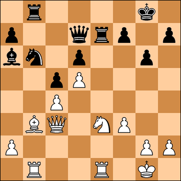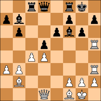 El material es idéntico en ambos colores. Podría considerarse incluso que el blanco tiene ligera desventaja por poseer el alfil "malo". Pero el negro adolece de una gran debilidad en las casillas oscuras de su flanco de rey y abandonó tras la siguiente jugada de las blancas. ¿Cual fue?
